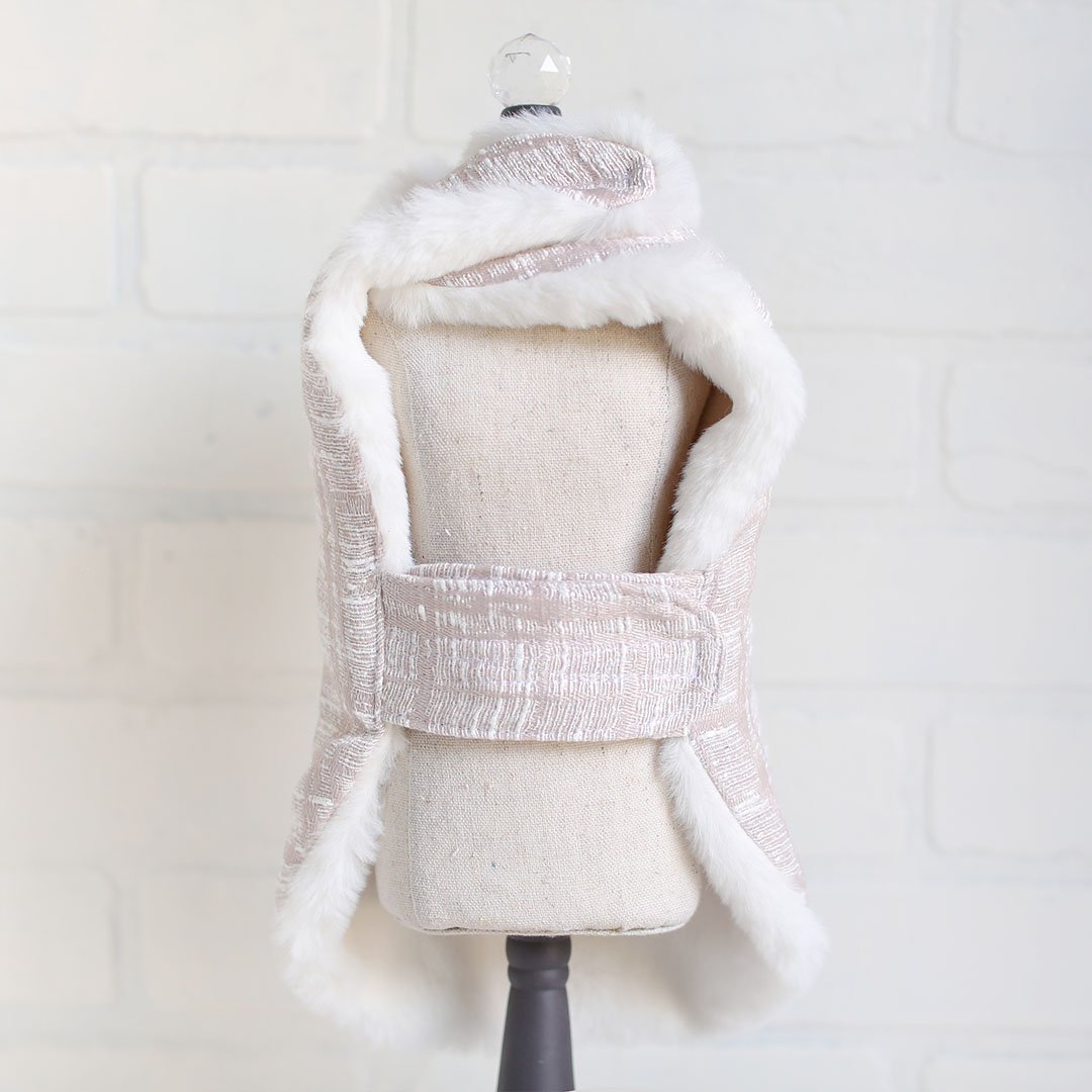 Your precious pooch will look regal in the Gia Dog Coat by Hello Doggie. Our new coat collection was released just in time for the fall/winter season. When designing this coat we had the pooch in mind, our fur babies get cold too while they're out on the town for holiday shopping or a walk in the park. The coats are made from a beautiful soft tweed blend fabric and are lined with faux fur for a timeless design  and to keep out that extra chill. These coats are perfect to pair up with your favorite Hello Doggie sweater, featuring adjustable velcro straps for a perfect fit when adding layers. It is easy to care for, delicate wash with no softener or bleach and air dry. Our coats are fashionable and most importantly comfortable to wear. Each Coat has a matching harness, sold separately. Limited Edition MSRP $84.00 * Coats are handmade sizes may vary slightly. Made in the USA.