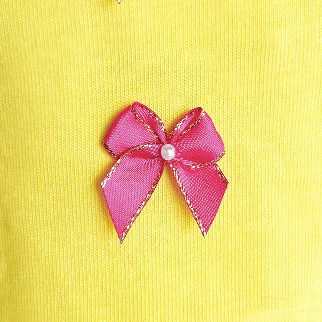 Introducing the Summer Dreams Dog Dress by Hello Doggie! Made from 100% cotton, this dress is perfect for your furry friend to wear on a day out or during summer soirees. The handmade bows on this dress come with a gold trim finish and a pearl, which add a touch of elegance and glamour to your pet's wardrobe. Your dog will surely turn heads and receive compliments in this stunning dress. The breathable cotton material ensures your pup stays comfortable and cool while looking stylish. Whether you're going for a walk or a day out on the town, your furry friend will be dressed to impress in the Summer Dreams Dog Dress by Hello Doggie. Wash on delicate, no bleach or softener, air Dry or tumble on low. Sizes - XXS - L MSRP - $24.00 *Dresses are handmade, sizes may vary slightly. Made in USA.