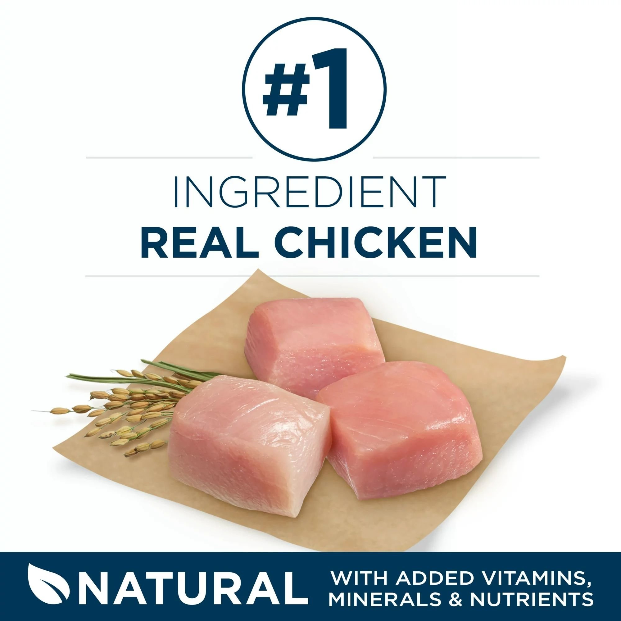 Provide your senior dog with the nutrition their body needs to keep them going strong well into their golden years by serving this High Protein Senior Dry Dog Food Formula. Packed with a wealth of healthy ingredients; this high protein dog food supports strong muscles; including a healthy heart and features real chicken as the number one ingredient. To support their skin and coat and help them look their healthy and shiny best; Omega-6 fatty acids; along with dog vitamins and minerals; are added to this dog kibble for results you can see. As they age; maintaining mobility becomes increasingly important for dogs; which is why this formula includes glucosamine for dogs to promote hip and joint function. This Vibrant Maturity dog food is packed with MCT-rich vegetable oil; which supports mental sharpness and has been shown to increase the average activity level of dogs seven and older by up to 20 percent. Each serving of this chicken dog food will excite them with deliciously crunchy bites and tender meaty morsels that provide the Purina ONE dry dog food taste and textures dogs love with added calcium to promote strong teeth and healthy gums. To ensure that more nutrition goes to work inside your dog; this dry dog food is designed to be highly digestible.