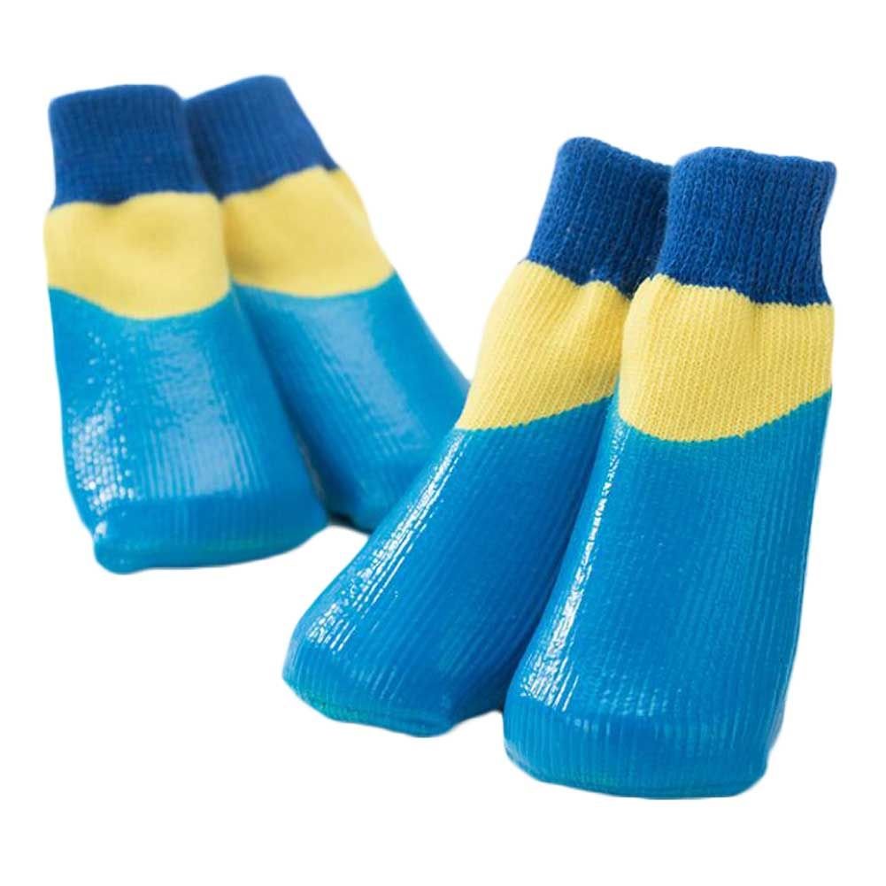 4 Pcs Dog Knitted Socks Pet Leg Socks Teddy Small Dog Waterproof Coated Socks Scratch Proof Protective Socks, Blue 4#
