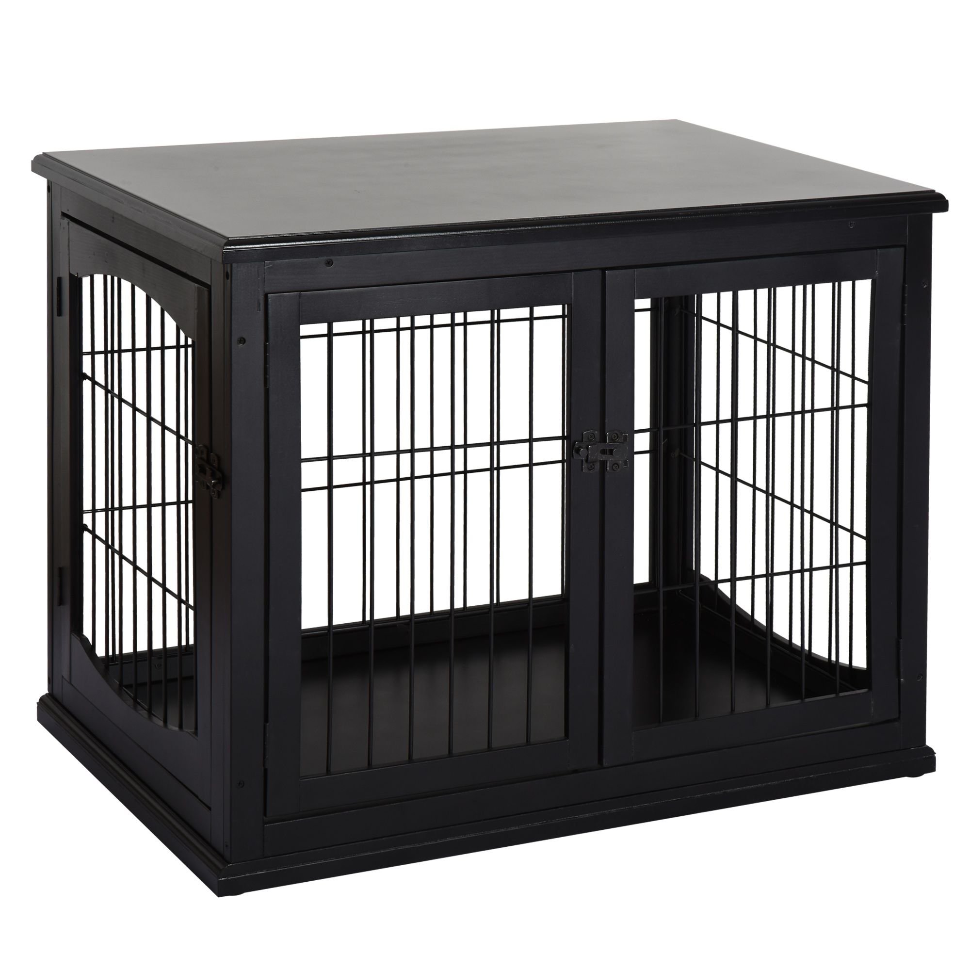 With a tabletop, this 2-in-1 design decreases the crowd of items in a small room by making pet crate into a rest surface. Featuring doors on two sides, it's easy to unlatch the enclosure, allowing you to reach from any angle. Made from quality materials, the PawHut wooden dog kennel will provide a decorative home for your pet with aesthetic. The simple but cute design of the dog crate end table for small dogs allows it to blend with any décor, while sticking with you for a long-lasting lifetime.