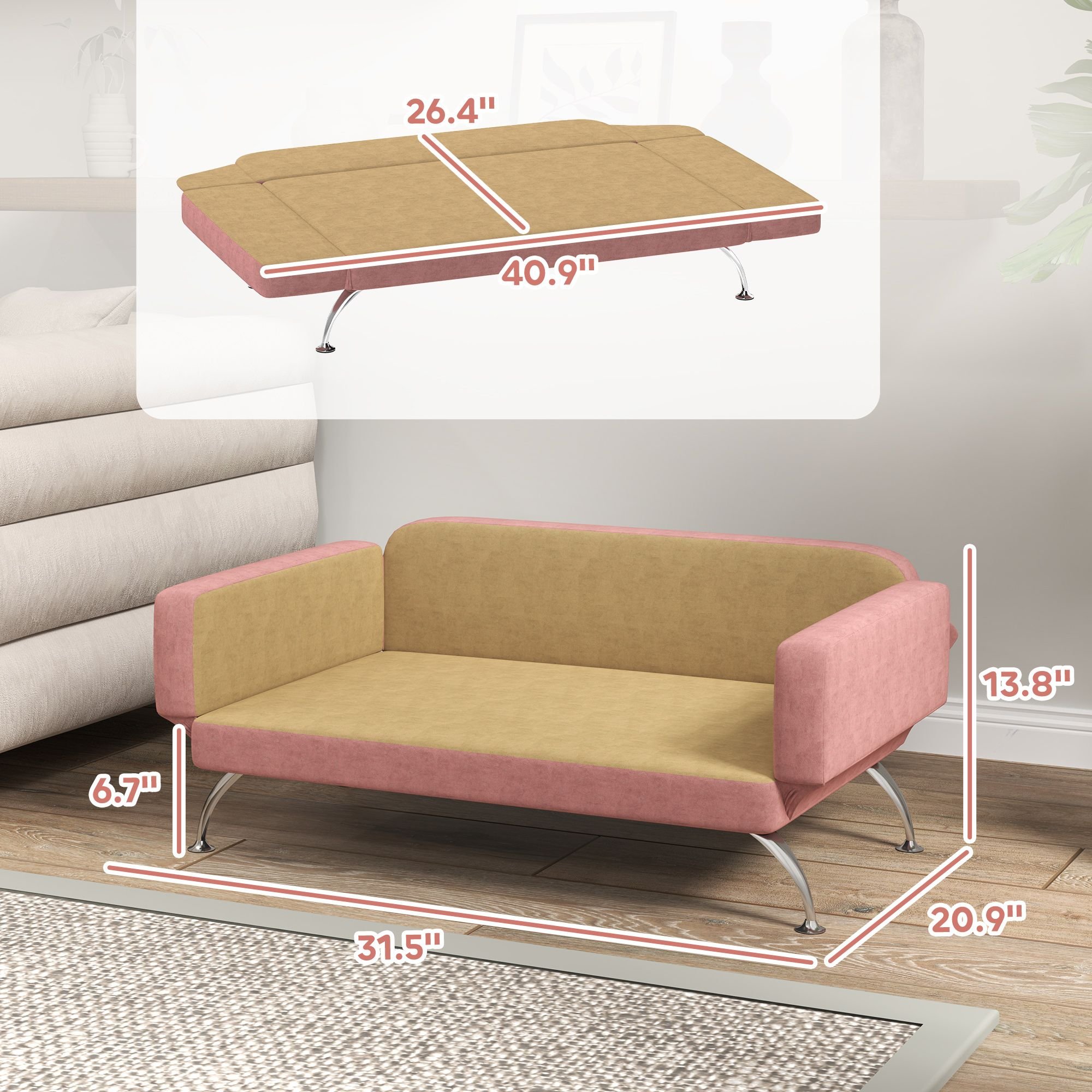 PawHut Dog Sofa Bed w/ Adjustable Armrest & Backrest for Small, Medium & Large Dogs, Pink