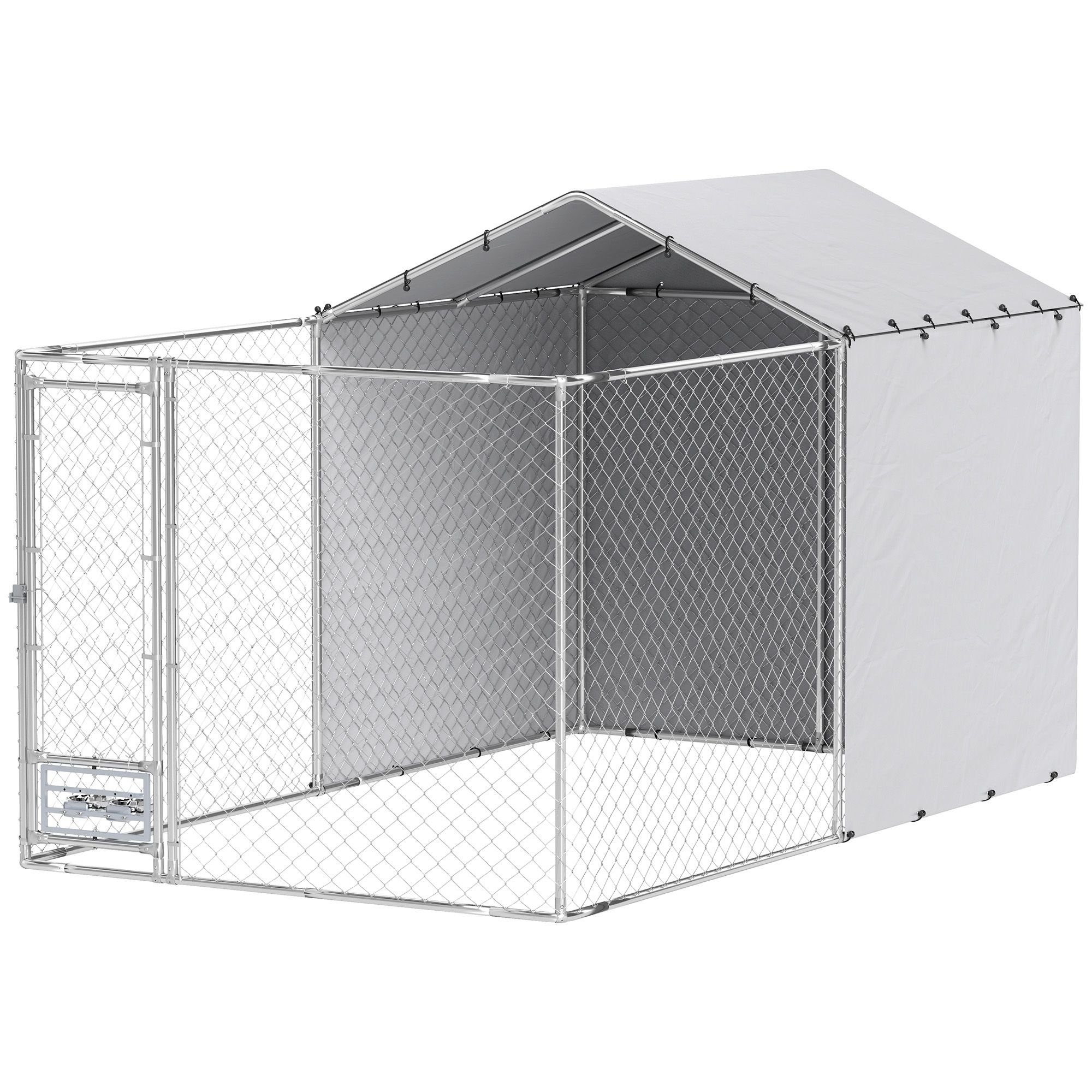 PawHut Galvanized Chain Link Large Outdoor Dog Kennel with Waterproof & UV-Resistant Cover, for M&L Dogs, 13.1' x 7.5' x 7.5' PawHut Galvanized Chain Link Large Outdoor Dog Kennel with Waterproof & UV-Resistant Cover, for M&L Dogs, 13.1' x 7.5' x 7.5' PawHut Galvanized Chain Link Large Outdoor Dog Kennel with Waterproof & UV-Resistant Cover, for M&L Dogs, 13.1' x 7.5' x 7.5'