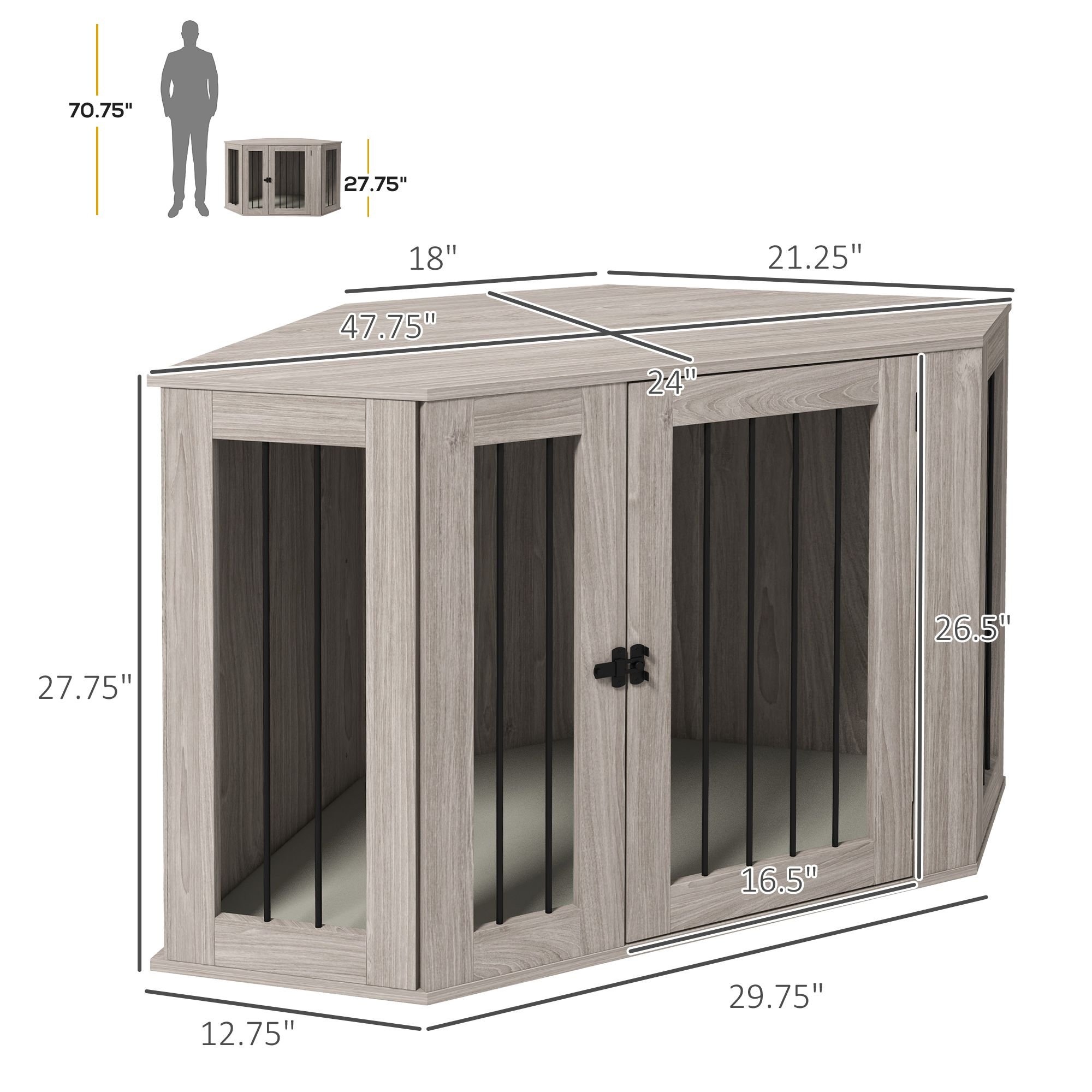4.- Stylish Decor: Featuring a door and a wood grain look, our furniture style dog crate can blend beautifully with your home decor. Also, with it corner design, it can help you utilize every inch of space in your home, even a small room won't take much space..