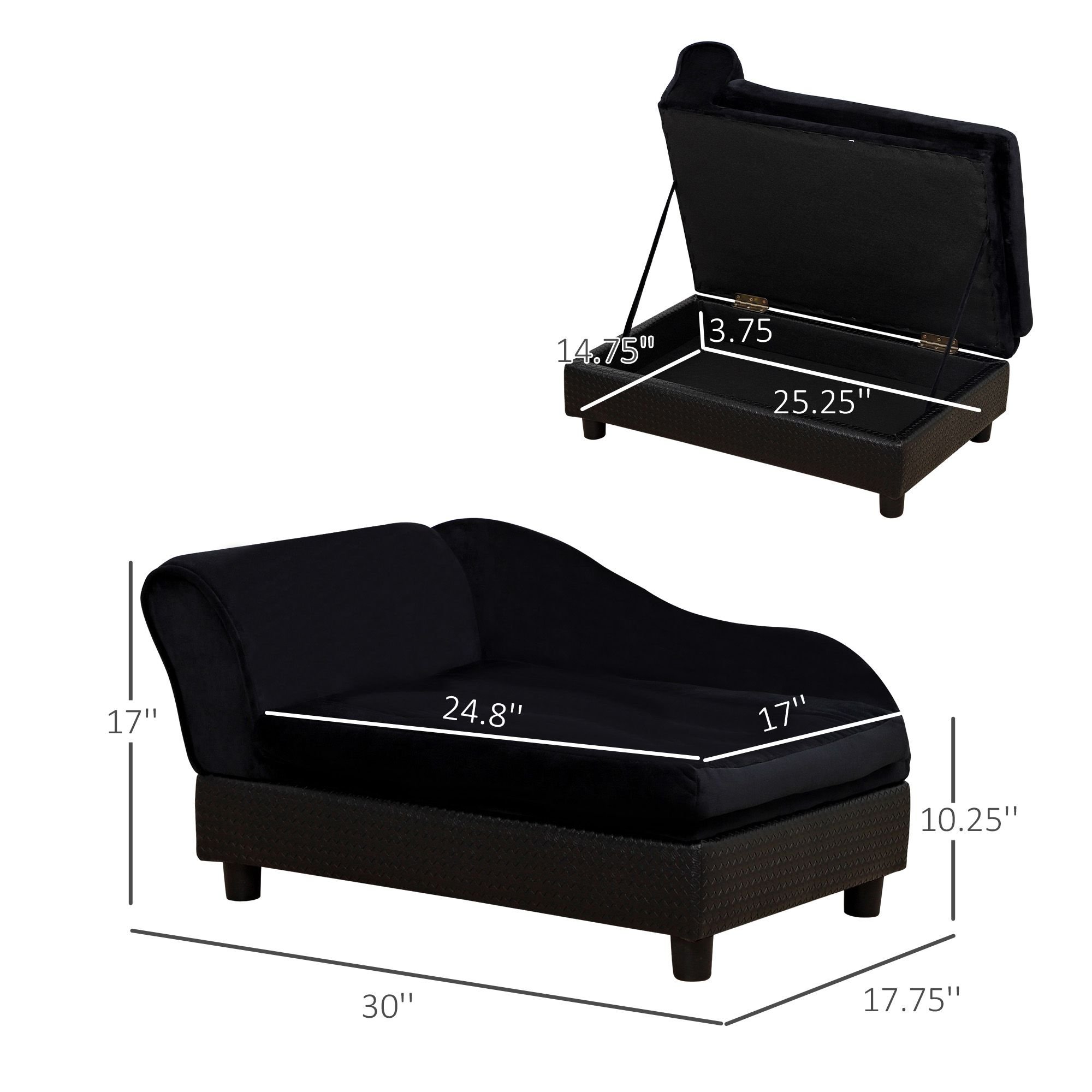 PawHut Luxury Dog Bed for Small Dogs, Hidden Storage, 3" Foam Cushion, Modern Pet Sofa, Black