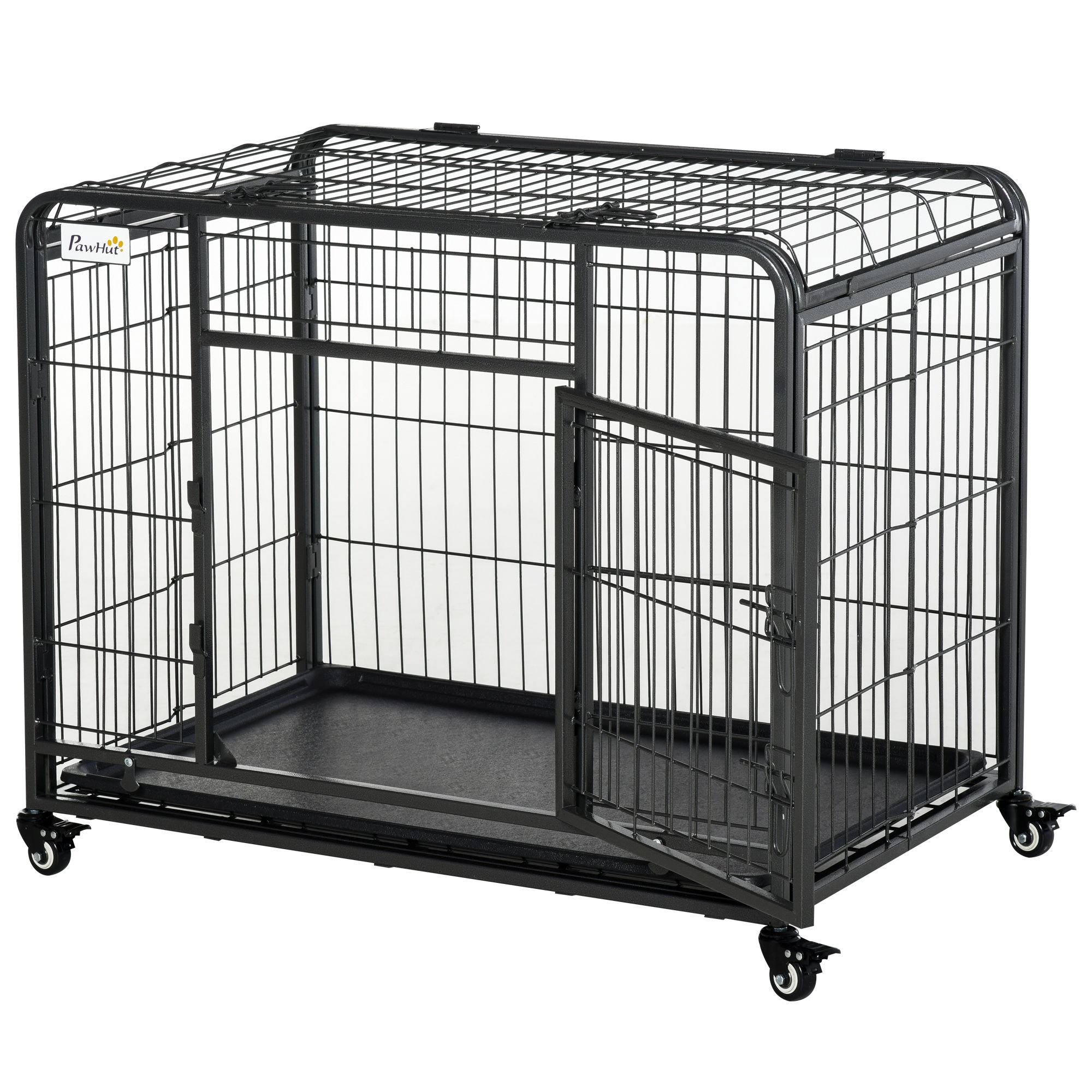 This dog crate from PawHut is the perfect comfortable and secure home for your furry friend! With longevity in mind, we made sure to construct the dog kennel of strong metal wire, welded together to prove long-lasting strength. Because of that simple design, the dog cage can easily fold down to a more portable size. This not only helps you move the dog home around but means it's easy to store when not in use! The crate has four rolling wheels on the bottom for easy movement, while a tray under the floor helps to catch any unnecessary messes from your pet. Check out our PawHut dog kennel and allow your pet the home they deserve!